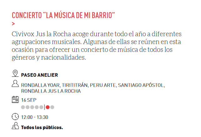 CONCIERTO «LA MÚSICA DE MI BARRIO» – CALLEJEANDO POR LA ROCHA. 10/09/202311/09/2023 La Asociación Cultural «El Tirititrán» participa en estas jornadas con un concierto a cargo del dúo Flaven (Benjamín Pérez & Javier Bermejo). Relacionado