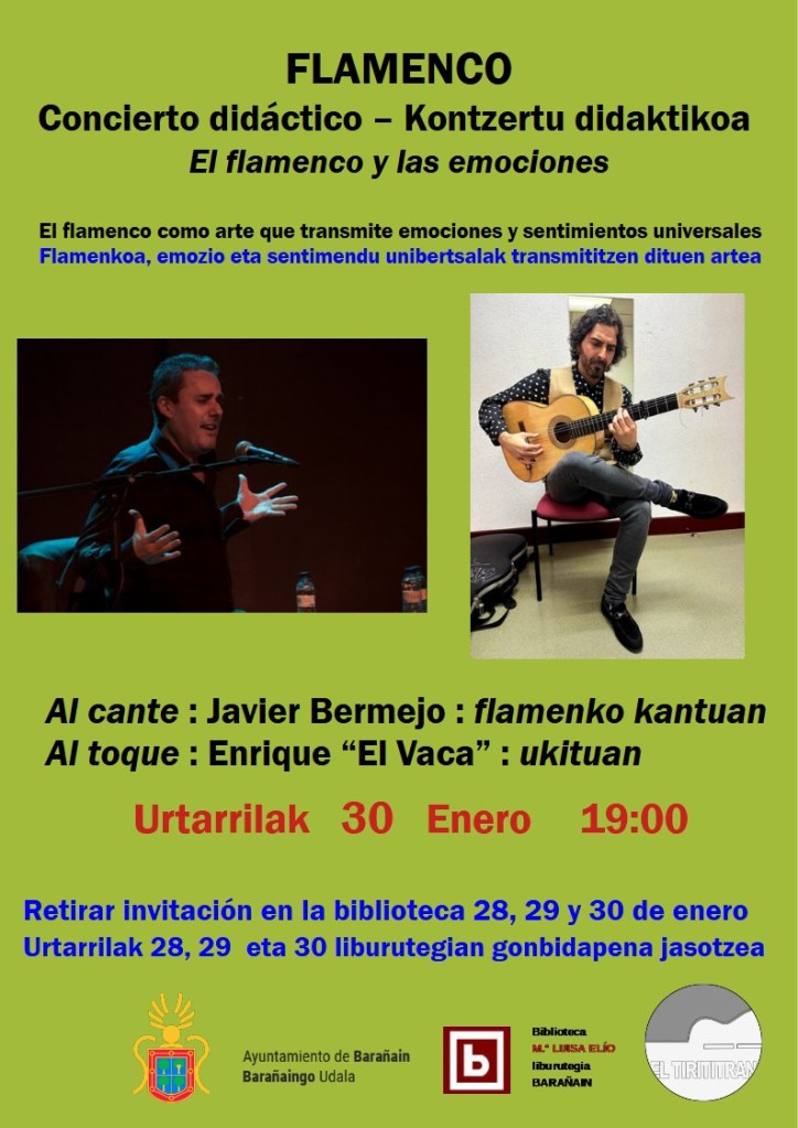 CONCIERTO DIDÁCTICO EN LA BIBLIOTECA Mª LUISA ELÍO (BARAÑÁIN). «EL FLAMENCO Y LAS EMOCIONES».