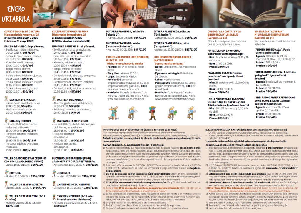 CASA DE CULTURA DE BARAÑAIN – CURSOS DE GUITARRA FLAMENCA (Iniciación y nivel medio). 23/12/202406/01/2025