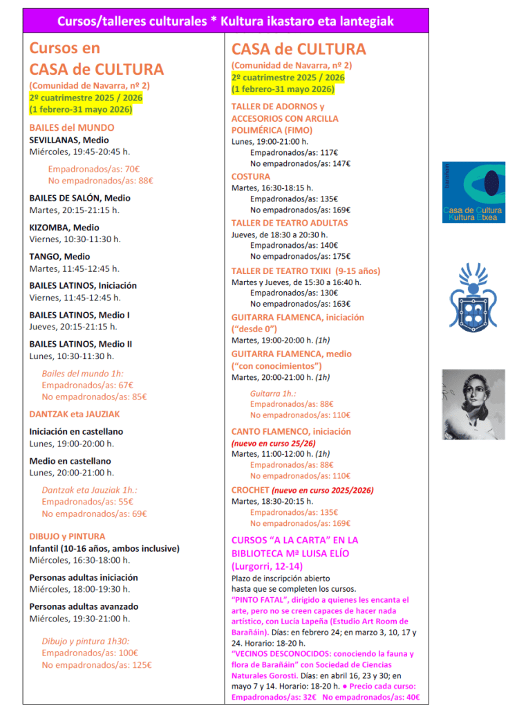 CASA DE CULTURA DE BARAÑAIN-CURSOS DE GUITARRA FLAMENCA (Iniciación y nivel medio) -CURSO DE CANTO FLAMENCO
